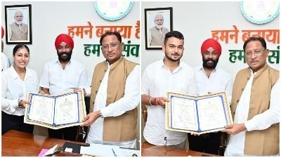सीएम विष्णु देव साय से राष्ट्रपति सम्मान से सम्मानित देवाशीष और मनतृप्त कौर ने की सौजन्य मुलाकात