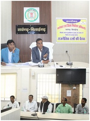 सारंगढ़-बिलाईगढ़ । कलेक्टर एवं जिला निर्वाचन अधिकारी डॉ संजय कन्नौजे की अध्यक्षता में कलेक्ट्रेट सभाकक्ष में राजनीतिक दलों की प्रतिनिधियों का बैठक आयोजित किया गया।