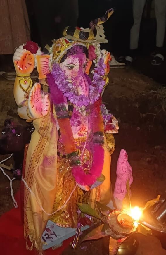 सर्पराज ने प्रतिमा के ऊपर से एक चक्कर घूमने के बाद काफी देर तक प्रतिमा से लिपटे रहे, और फिर अपने आप ही वहां से चले गए। इसके बाद ग्रामवासियों ने मूर्ति को नदी में विसर्जित किया। ग्रामीणों ने इस घटना को गणेश भगवान की कृपा और चमत्कार माना है।