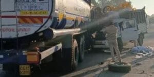 पिकअप ड्राइवर की दर्दनाक मौत, डीजल ट्रक से वाहन की टक्कर