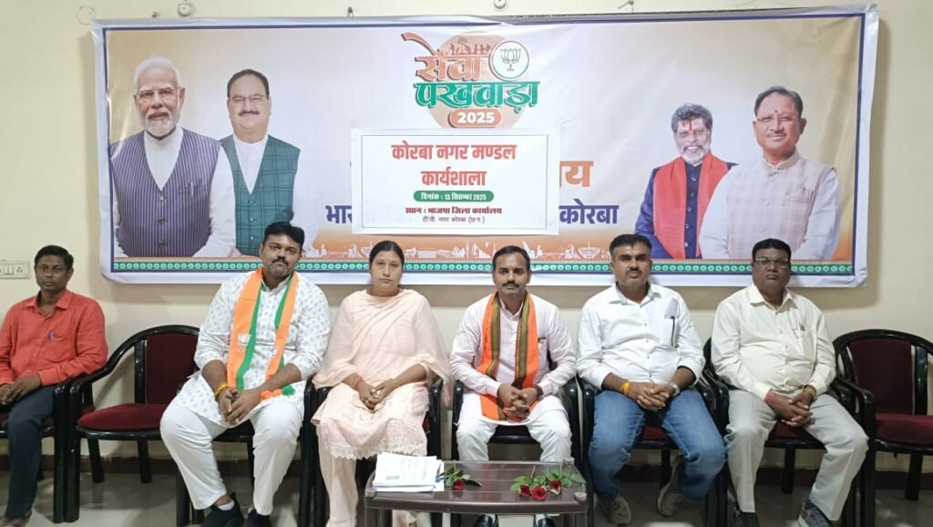 कोरबा प्रधानमंत्री नरेंद्र मोदी जी के जन्म दिवस 17 सितंबर के अवसर पर प्रत्येक वर्ष भाजपा के कार्यकर्ताओं द्वारा सेवा पखवाड़ा के रूप में 17 सितंबर से 2 अक्टूबर तक सेवा पखवाड़ा मनाया जाता है। जिसमें विभिन्न प्रकार के सेवा कार्य अलग-अलग क्षेत्र में कार्यकर्ताओं द्वारा आयोजित किए जाते हैं। इस वर्ष भी देश भर में मंडल स्तर पर सभी कार्यकर्ता सेवा पखवाड़ा आयोजित करने की दिशा में बैठकों का आयोजन कर रहे हैं। इसी क्रम में कोरबा नगर मंडल में बैठक संपन्न हुई।