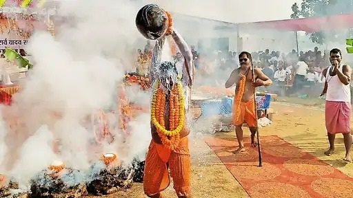 विजयनगर के धान खरीदी केंद्र के समीप बाकी नदी तट पर बने पूजा स्थल पर मिट्टी के घड़े में दूध भरकर गोबर के उपले से आग लगाई गई और उसी में दूध को खौलाया गया। इसके बाद गोविंद भगत यादव ने पूजा से जुड़ी कथा लोगों को सुनाई और परंपरा के अनुरूप खौलते दूध से स्नान कर चमत्कारिक अनुष्ठान प्रस्तुत किया, जिसे देखकर श्रद्धालु अभिभूत हो उठे।