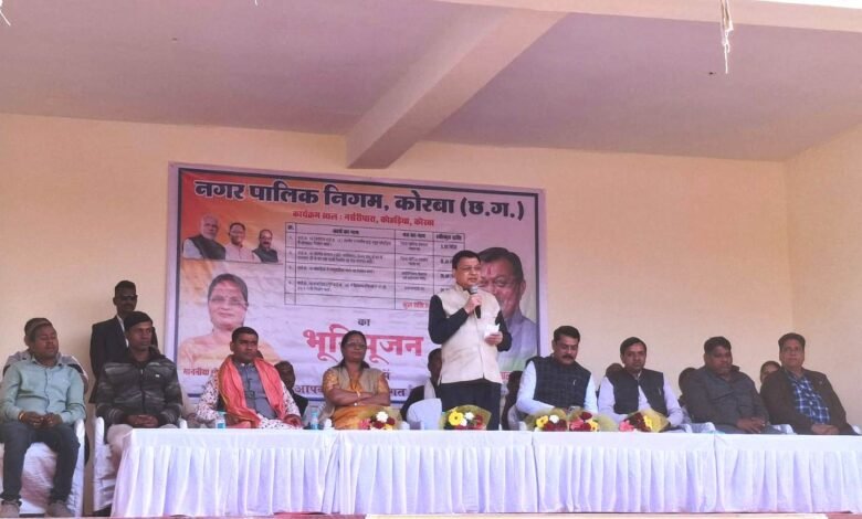 कोरबा- नगर पालिक निगम कोरबा के टी.पी.नगर जोन के अंतर्गत आने वाले वार्ड क्र. 18, 15, 17, 03 एवं 04 में 02 करोड़ 28 लाख 60 हजार रूपये के नए विकास कार्य कराए जाएंगे। आज नर्सरीपारा कोहड़िया, ढोढ़ीपारा भैंसखटाल तथा राताखार बजरंग चौक में आयोजित भूमिपूजन कार्यक्रम के दौरान प्रदेश के उद्योग, वाणिज्य, श्रम, आबकारी व सार्वजनिक उपक्रम मंत्री लखनलाल देवांगन के मुख्य आतिथ्य एवं महापौर श्रीमती संजूदेवी राजपूत की अध्यक्षता में इन विकास कार्यो का भूमिपूजन उनके करकमलों से किया गया।