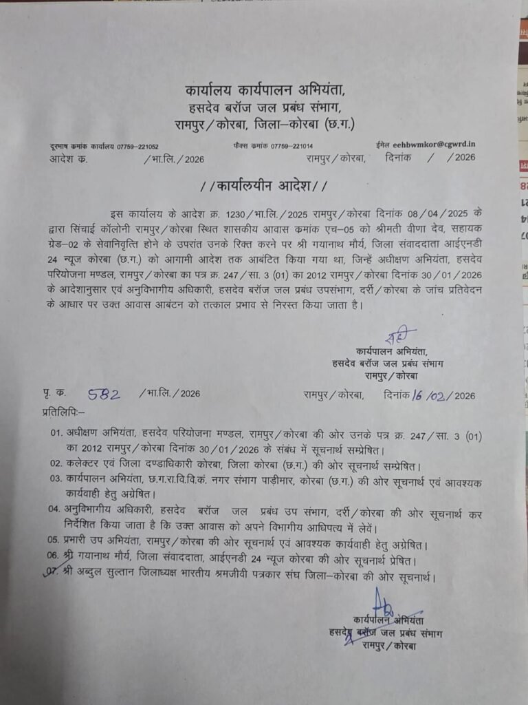 पत्रकारिता को शर्मशार करने वाली घटना… तथाकथित पत्रकार द्वारा जलसंसाधन विभाग, रामपुर स्थित शासकीय आवास HPT H-5 में ताला तोड़कर आपराधिक घुसपैठ, व्यापक तोड़फोड़ एवं लाखों रुपये की शासकीय संपत्ति की खुली चोरी